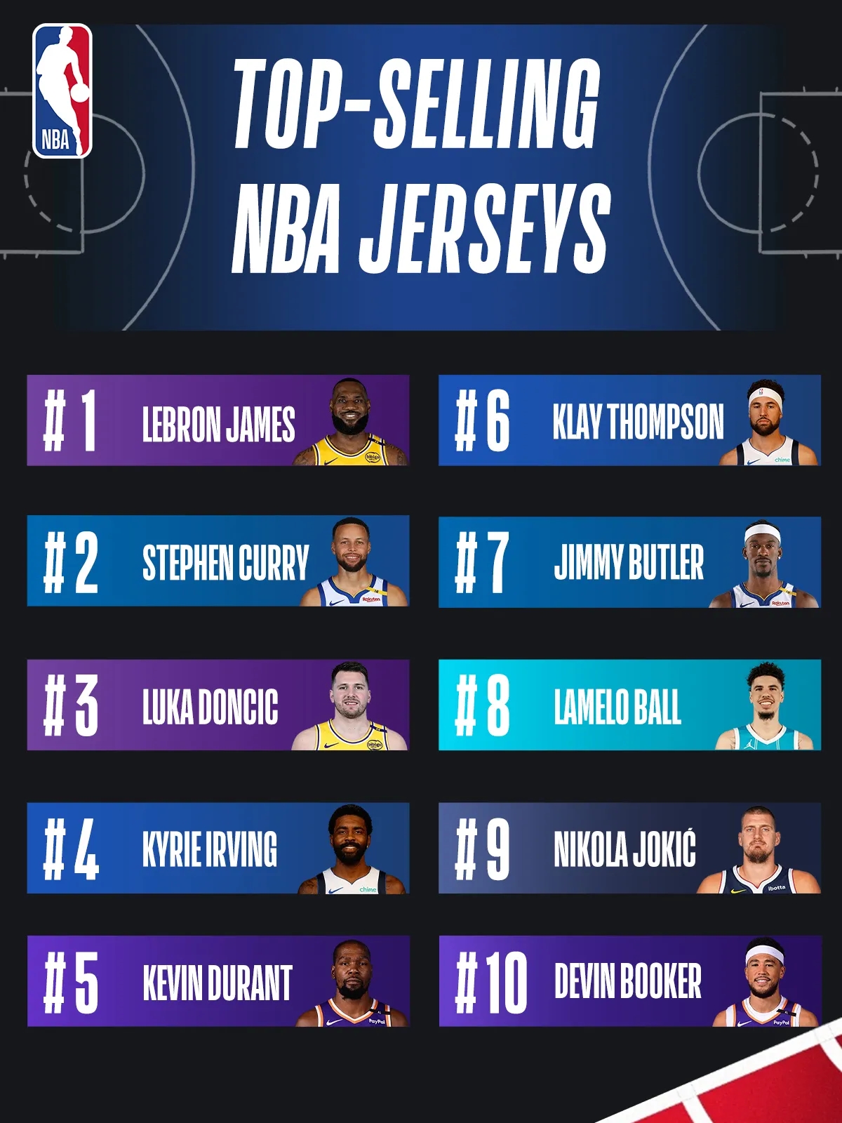 半程球衣銷量排行榜:庫里詹姆斯分列前二 文班第五 杜蘭特第13