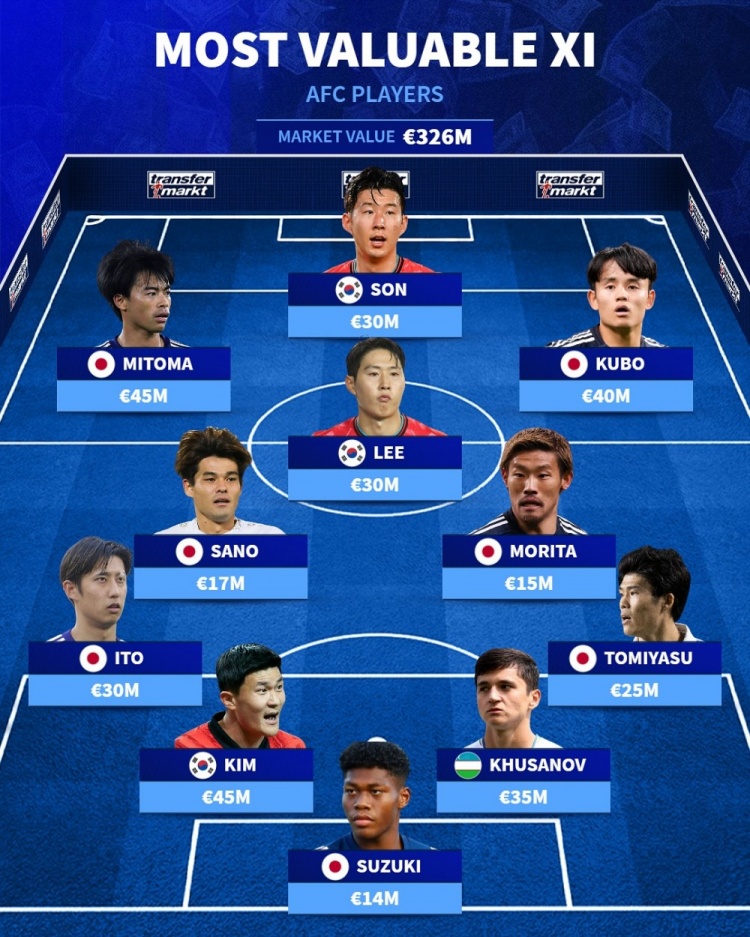 亞洲德轉身價最高陣:孫興慜、三笘薫、胡桑諾夫在列,日本占7席